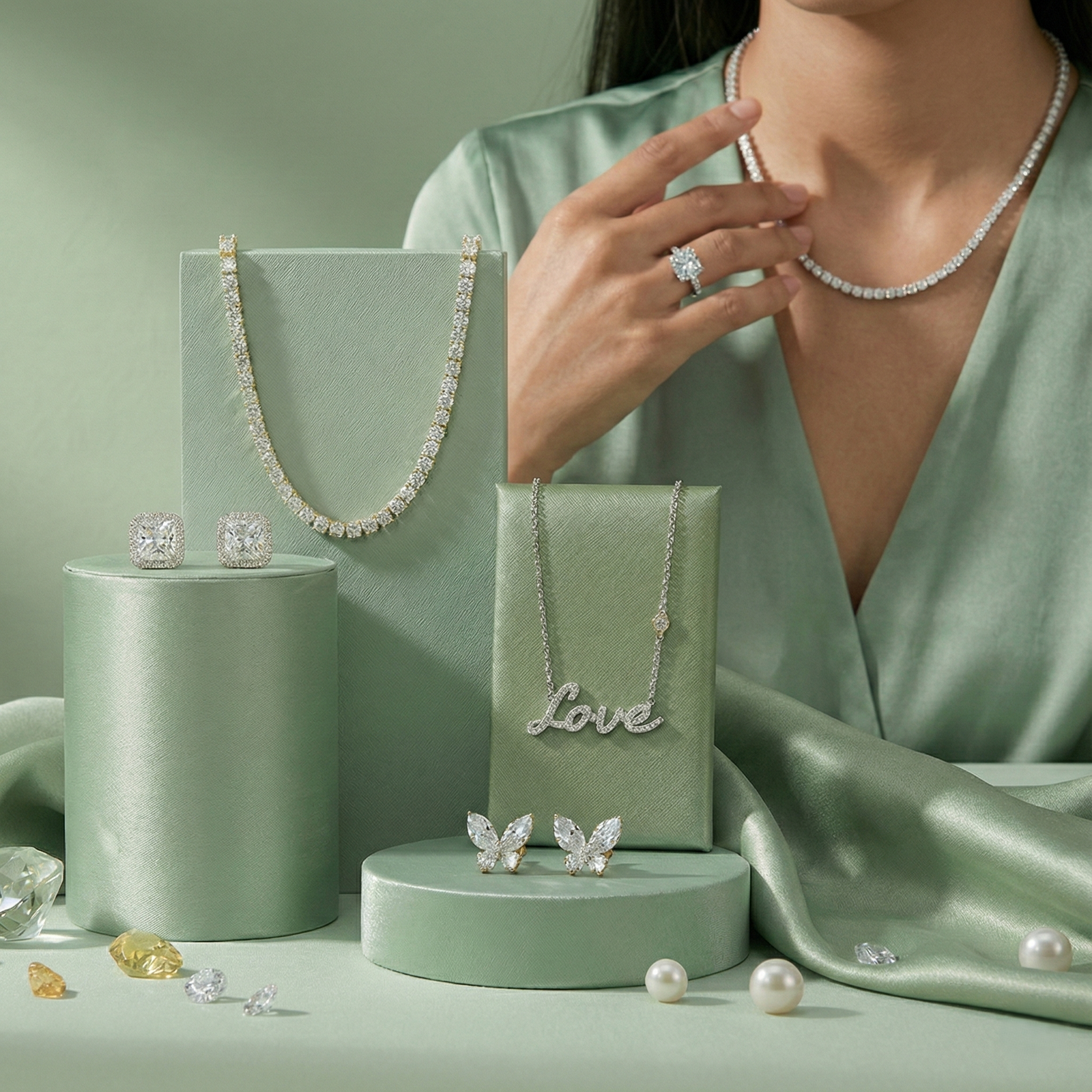 Floral Moissanite Cross Pendant - Sterling Silver Necklace